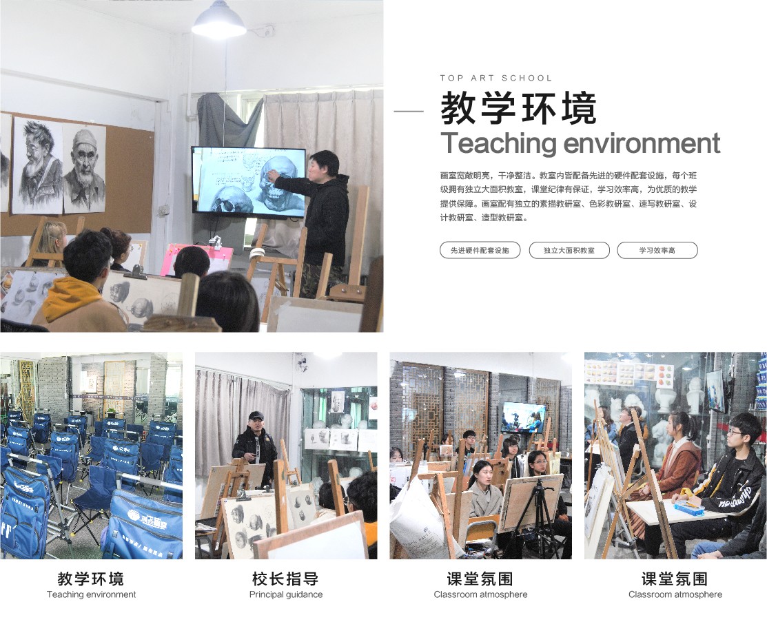 畫室寬敞明亮,干凈整潔。教室內(nèi)皆配備先進的硬件配套設(shè)施,每個班級擁有獨立大面積教室,教室與教室之間隔音效果較好,課堂紀(jì)律有保證,學(xué)習(xí)效率高,為優(yōu)質(zhì)的教學(xué)提供保障。畫室配有獨立的素描教研室、色彩教研室、速寫教研室、設(shè)計教研室、造型教研室。